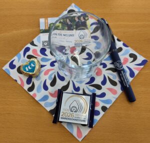 Die Tagesordnung mit 15 Punkten machte schon mal deutlich, dass es in der Diözesanleitung viel zu besprechen gibt. Bei einigen der Punkte ging es um eine Reflexion von z.B. Gartenfest oder Bischofsbesuch. Bei anderen wiederum wurde schon vorausgeblickt und geplant, was 2026 auf die Würzburger Schönstattfamilie zukommt. Der Katholikentag, der diözesane Strategieprozess oder das Jubiläum der Marienschwestern. Damit wurde auch gleich am Platz geworben. Die Mitglieder der Diözesanleitung fanden die neusten Werbeutensilien vor sich auf dem Tisch und die Marienschwestern taten das Ihre, für das Jubiläumsjahr und insbesondere die große Geburtstagsfeier am 3. Oktober 2026 in Schönstatt zu werben. Informiert wurde über den aktuellen Stand in Sachen Photovoltaik-Anlage aber auch die Flohmarkthütte die zeitgleich entstand und von deren Baufortschritt man sich in den Pausen von oben überzeugen konnte.