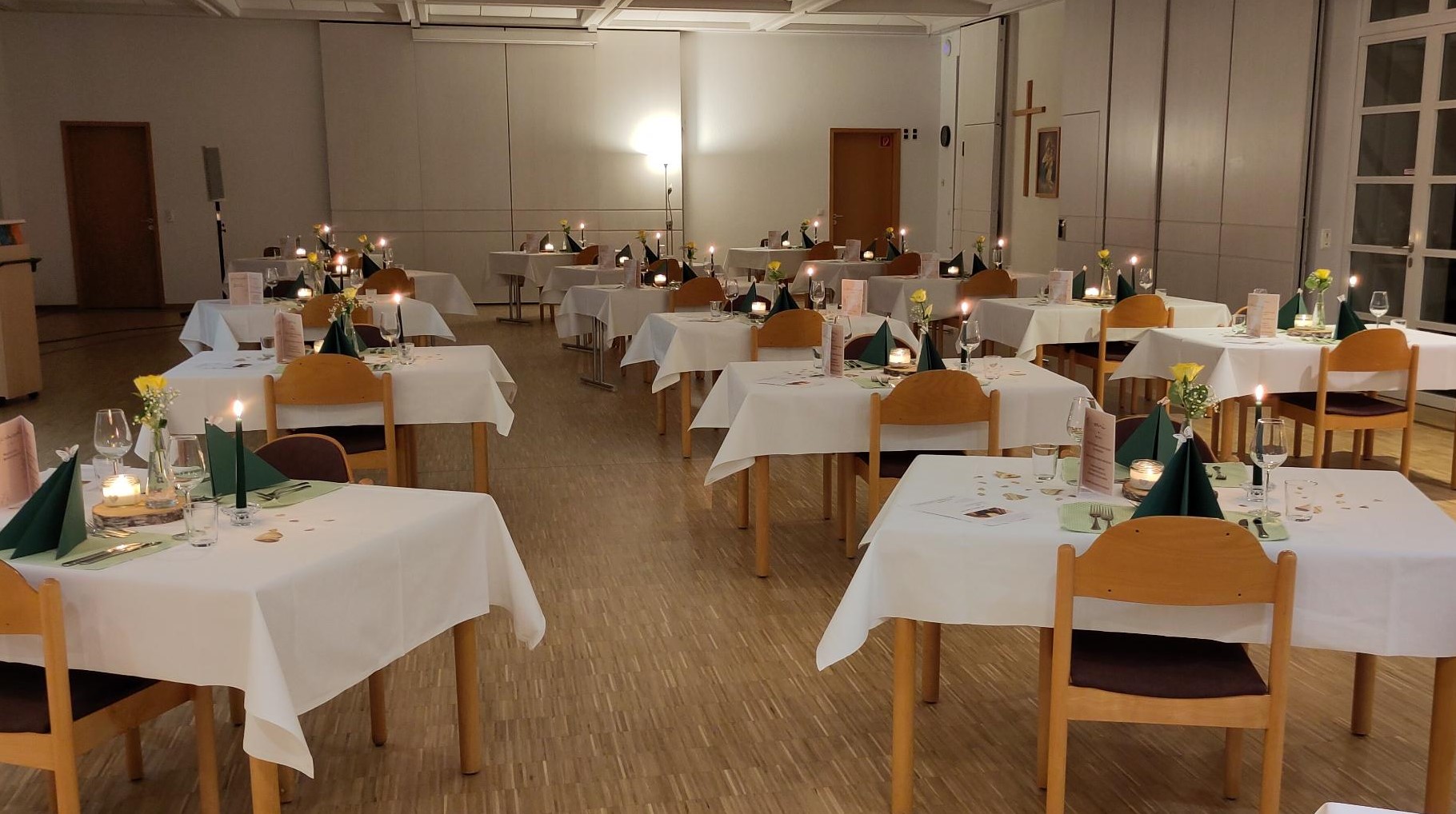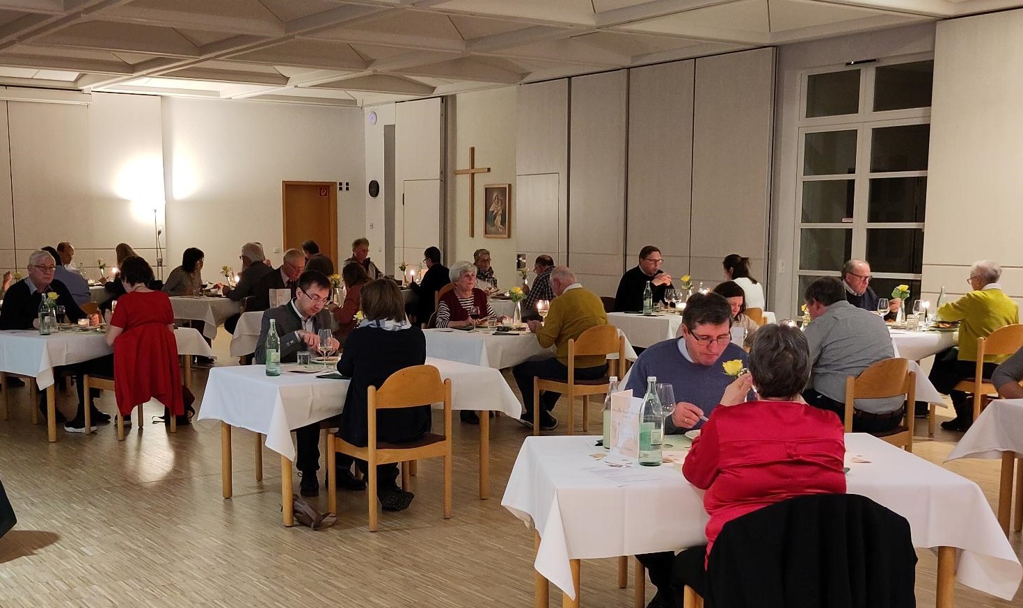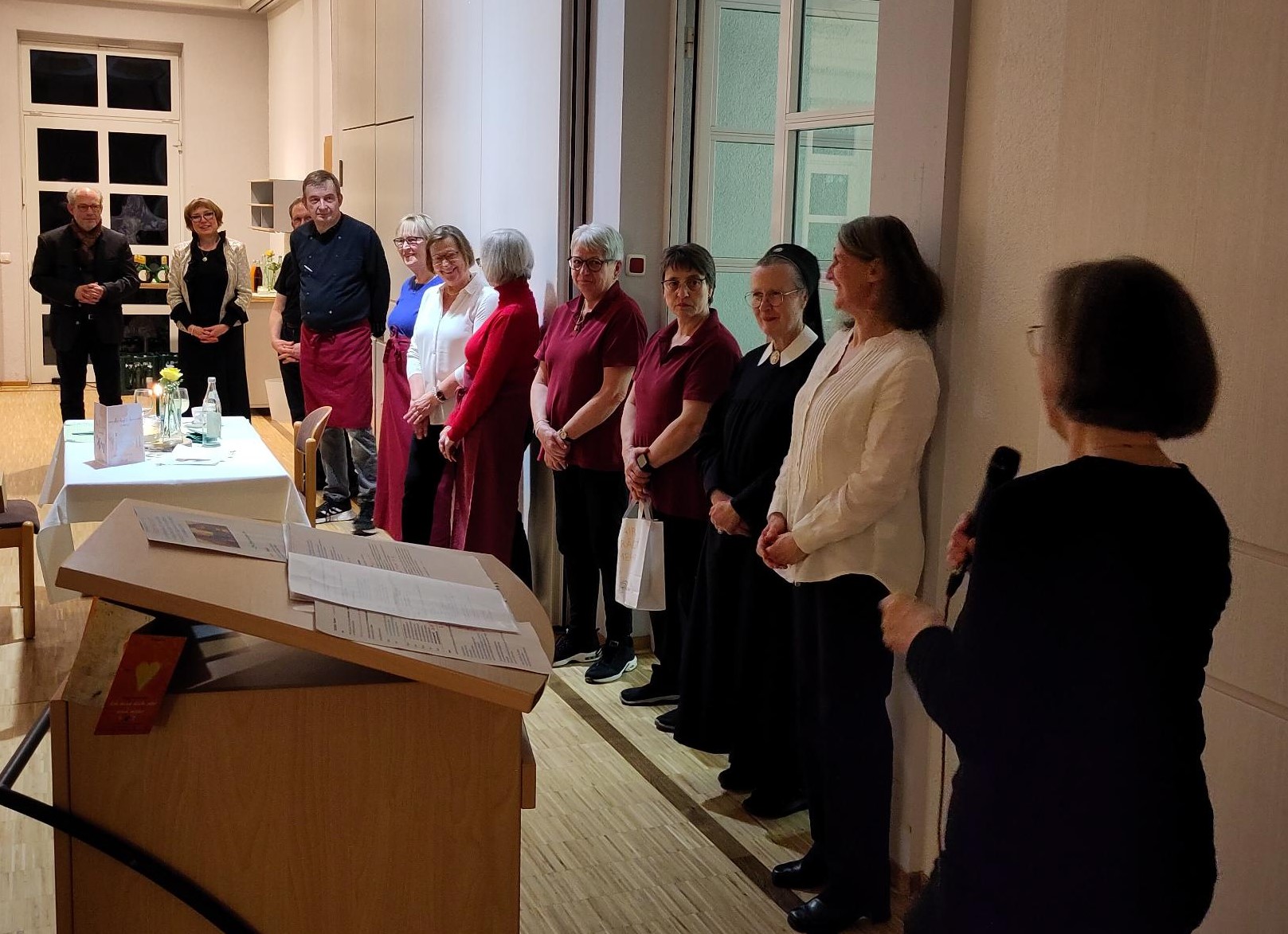 Ein Dankeschön gab es zum Schluss für das Küchenteam der Marienhöhe und die ehrenamtlich Aktiven im Service und beim Spülen, ohne die ein solcher Abend nicht möglich wäre. Mögen die herrlichen Speisen und anspruchsvollen Gedanken allen Gästen für längere Zeit nachklingen …