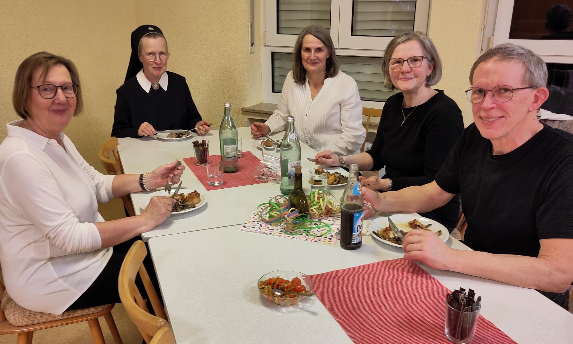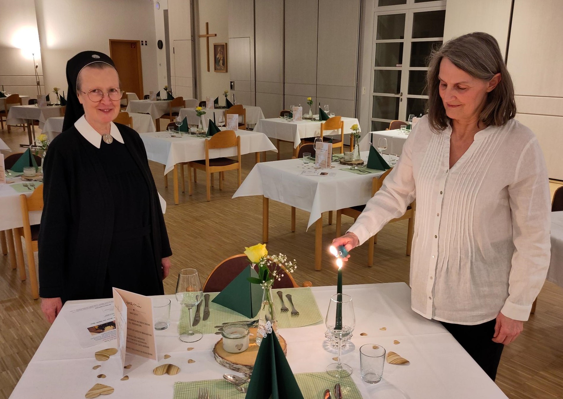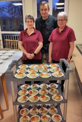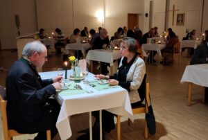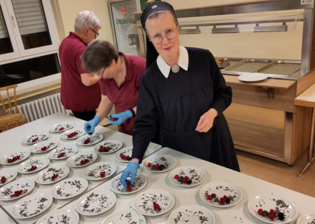 Ein Dankeschön gab es zum Schluss für das Küchenteam der Marienhöhe und die ehrenamtlich Aktiven im Service und beim Spülen, ohne die ein solcher Abend nicht möglich wäre. Mögen die herrlichen Speisen und anspruchsvollen Gedanken allen Gästen für längere Zeit nachklingen …