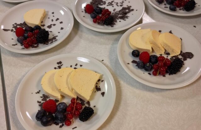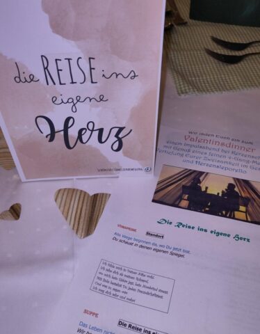 „Alle Wege beginnen, da wo Du jetzt bist“, so ging die gemeinsame Reise los und wurde mit dem Amuse-Gueule und der Vorspeise aus der Küche geschmacklich hervorragend eingeleitet. Und weil der Valentinstag diesmal auf den Faschingssamstag fiel, durfte zwischendurch natürlich auch kein gereimter Beitrag mit Helau fehlen. Auch bei der Begrüßung mit Sektempfang wurde dieser Festtag der Liebe und des närrischen Treibens als Bunte Auszeit beschrieben, bei der allen Teilnehmerinnen und Teilnehmern eine bunte Vielfalt an Essen und Gedanken serviert werden sollte. Und so war es dann auch. Bei der Brokkoli-Cremesuppe mit gerösteten Mandelblättern wurde die Reise fortgesetzt und zwar in den Herzensraum der Partnerin und des Partners, um sich dort auch Herzensregungen zu zeigen. In ausdrucksstarken Beschreibungen der Herzenslandschaft durfte man sich gemeinsam fragen, welche Bilder ansprechen und hängen bleiben. Und dazwischen immer wieder Gereimtes, das mit „Und was zu sagen wär. Ich mag dich sehr und mehr!“ abschloss. Zum opulenten Hauptgang konnte man die Herzensreise dann gegenseitig auf sich wirken lassen, ehe ein hausgemachtes Vanille-Parfait an frischen Beeren einen krönenden Abschluss bildete.