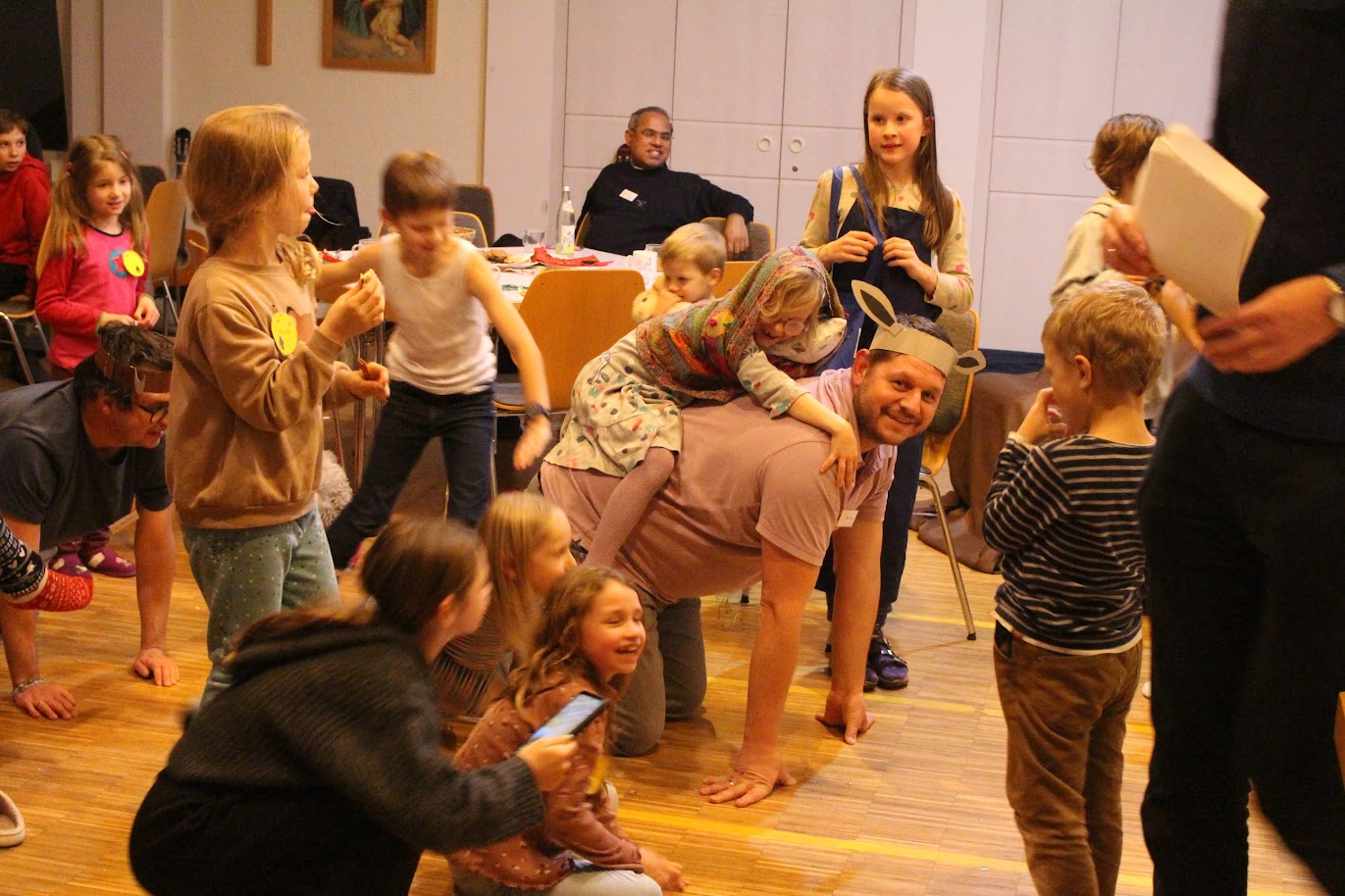 Der bunte Abend war ein Highlight: mit Punsch, Plätzchen und einem witzigen Krippenspiel, in dem Ochs Korbinian und Esel Benjamin eine besondere Rolle spielten. Beim 1-2-3-Spiel lernten sogar die Erwachsenen noch etwas Neues. Der Abend endete mit einem Segen und gemütlichem Beisammensein.
