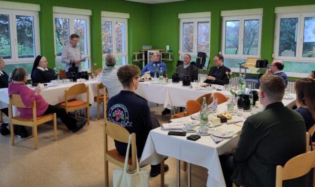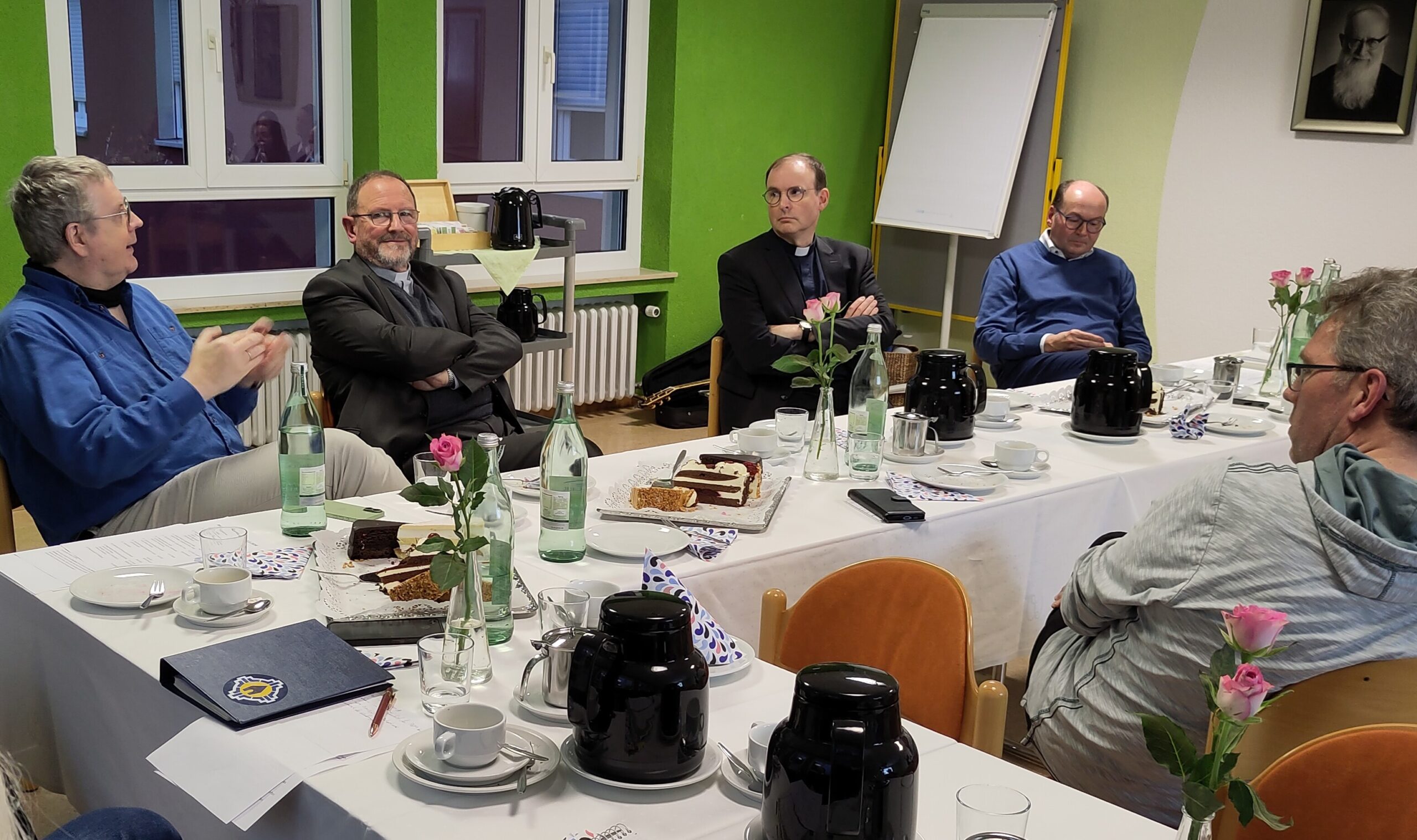 Ganz unkompliziert hatten wir ihn eingeladen, prompt hatte er zugesagt und ganz unkompliziert ist er gekommen. Und jetzt war er da – Weihbischof Paul Reder. Zum gemütlichen Sonntagskaffee in überschaubarer Runde. Aus den Gliederungen und Projekten der Würzburger Schönstattfamilie waren Vertreterinnen und Vertreter dabei – jung und alt – Schwestern und Pfarrer.